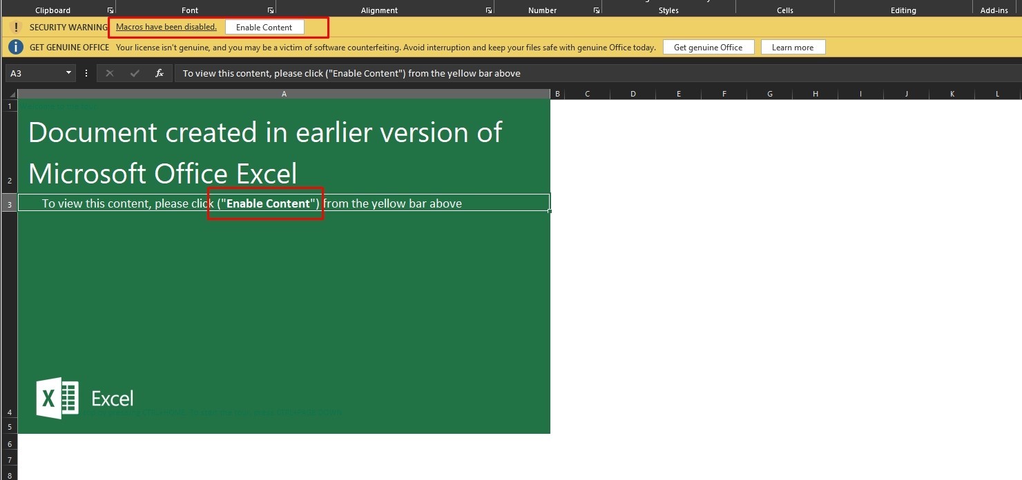 It also employs a social engineering technique to convince the user to enable macros, which then leads to the user being infected.