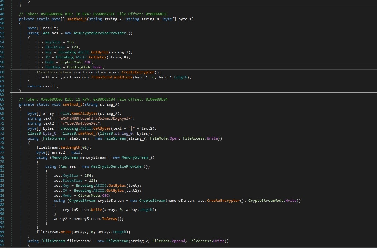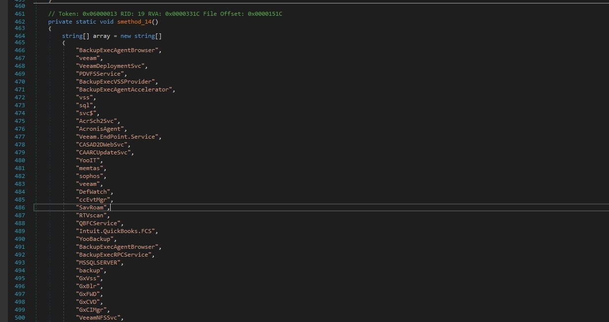 Advanced analysis has uncovered the ransomware’s functionalities, which include creating a mutex to prevent multiple instances, adding an ID to the ransom note to prevent the entire note from appearing during string examination, identifying file extensions for decryption, using RSA encryption for AES keys appended to encrypted files, deleting shadow copies to hinder file restoration, and terminating processes and services, including backup and antivirus services, to impede file restoration and malware detection.