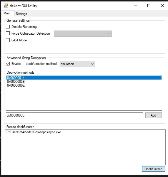 We should pass these tokens also to de4dot (0x0600000E, 0x06000014)