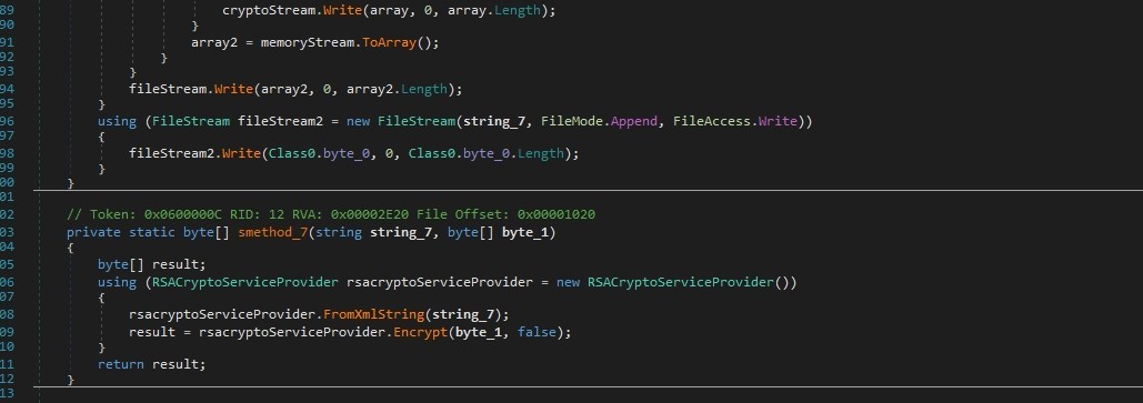 smethod_7 takes two parameters: string_7 (RSA public key) and byte_1 (data to encrypt).