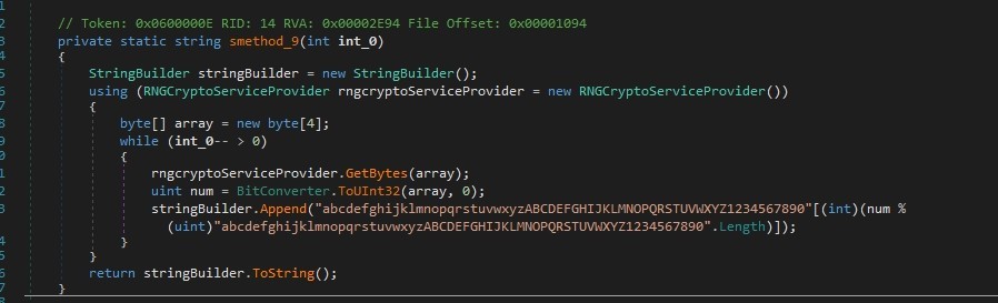 The string text is used as a key for encryption, however, the deobfuscators we used incorrectly identified it as a constant string, rather than a randomly generated one, Don’t ever blindly trust a tool.