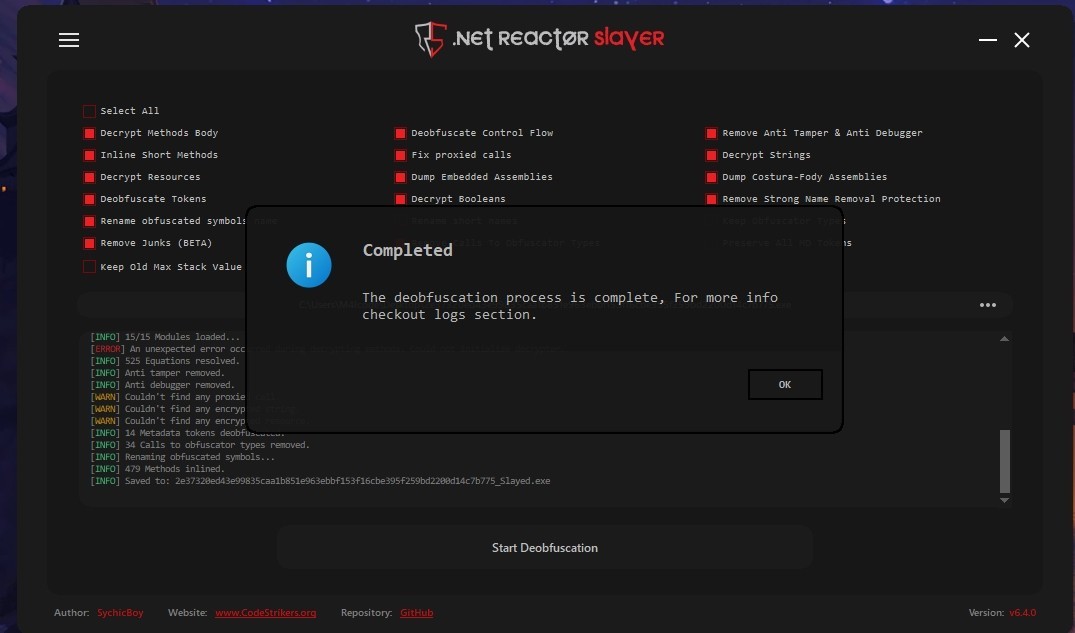 Method and Resource Decryption: It can decrypt methods, resources, and embedded files encrypted by the obfuscator.