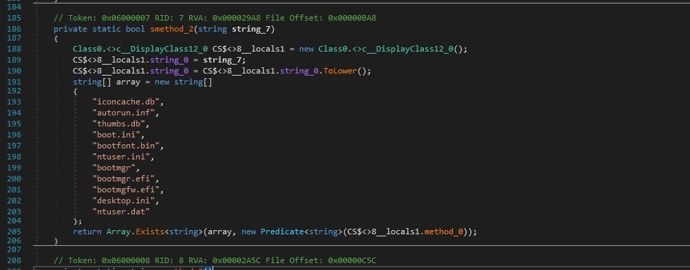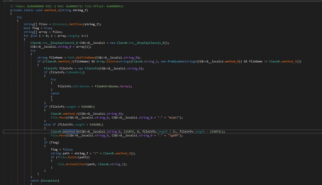 The malware iterates over each drive and avoids interference with essential system files. These files not only lack critical data for encryption but also possess large sizes, which would significantly slow down the encryption process, creating unnecessary noise without yielding any benefits. By sidestepping directories associated with system files or containing large, non-essential data, the malware optimizes its operation, focusing on encrypting valuable user data swiftly and discreetly. This strategic approach not only conserves resources but also enhances the malware’s effectiveness in achieving its intended goal of data encryption while minimizing the risk of detection by security software.