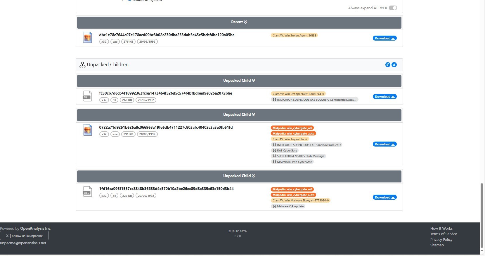 Now that’s enough let’s unpack the sample using unpacme, to make the process faster and get directly to the main unpacked sample.
