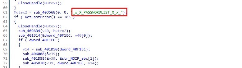 After that it creates 4th mutex _x_X_PASSWORDLIST_X_x_