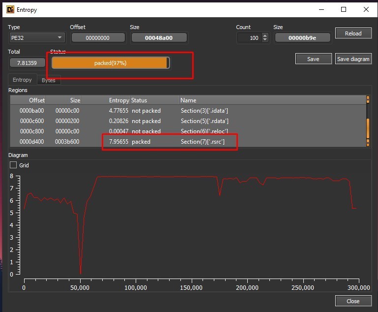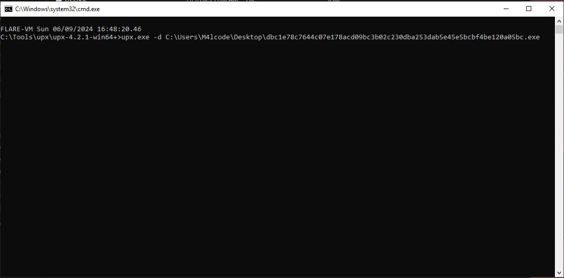 We have some indicators that this sample is packed using UPX Packer, as shown in the figure above, UPX is a file compressor. It reduces the file size of programs and DLLs by around 50%-70%, malware authors use that packer to obfuscate and compress their malicious code.