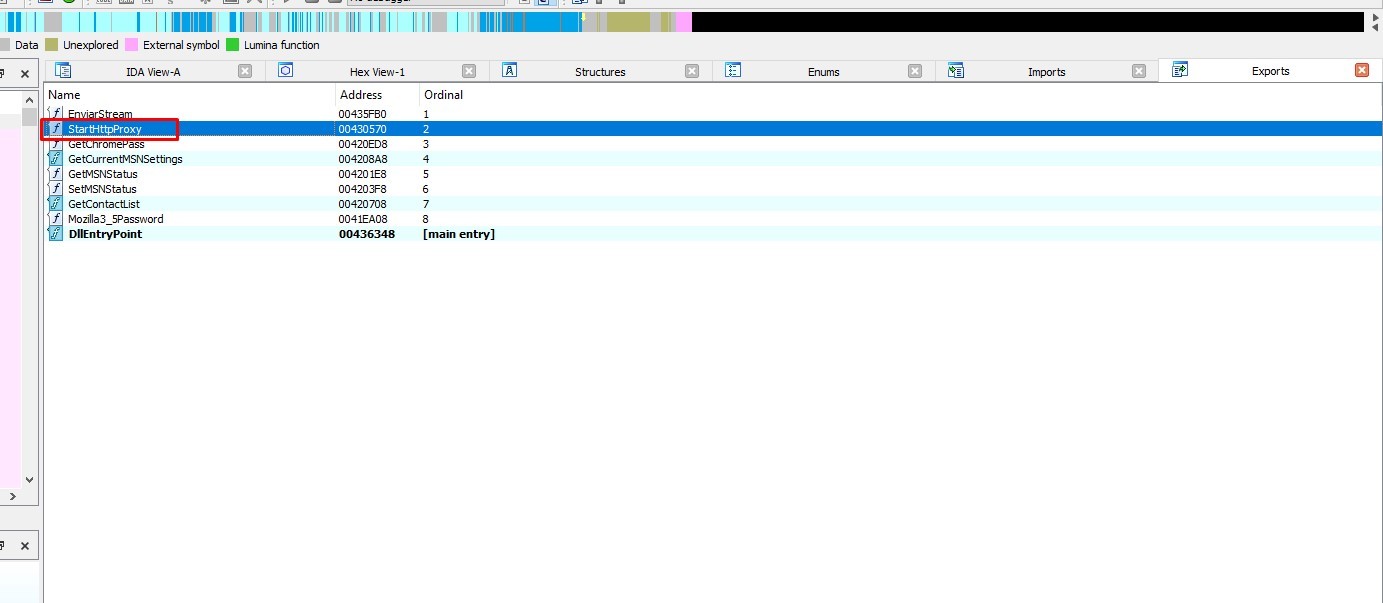 The dll entry point doesn’t have anything important, so let’s start from StartHttpProxy export