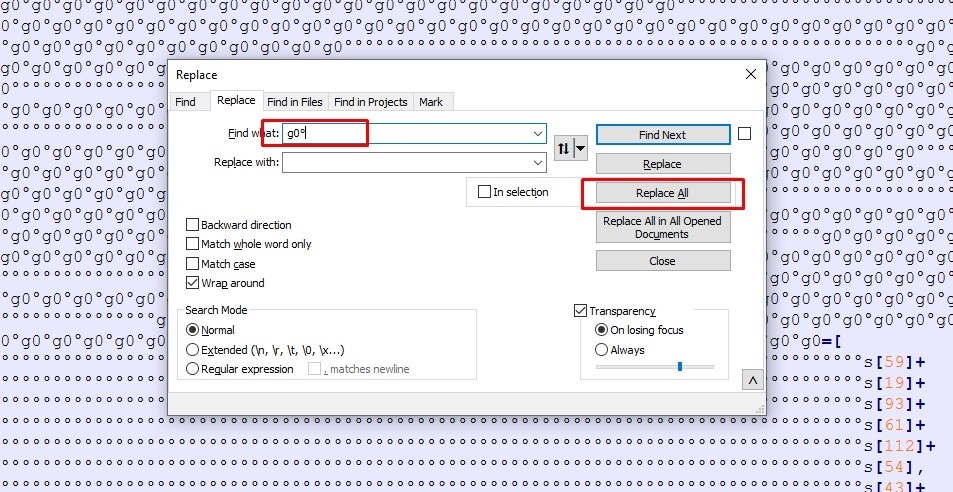 The code has obfuscation with ° and g0 spread throughout, so let’s remove them.