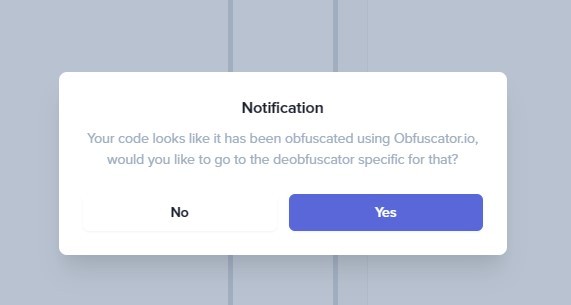 Also because of that, some sites implemented a feature that can try to find the obfuscator used to obfuscate the JS file and others use dynamic analysis and sandboxing to analyze the sample and reconstruct a more readable version of it for you.